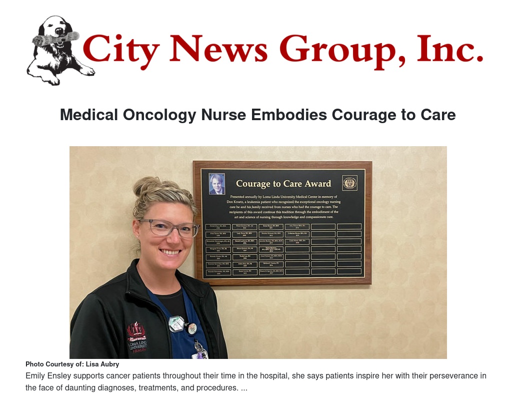 Medical Oncology Nurse Embodies Courage to Care by Lisa Aubry - City News Group, Inc.