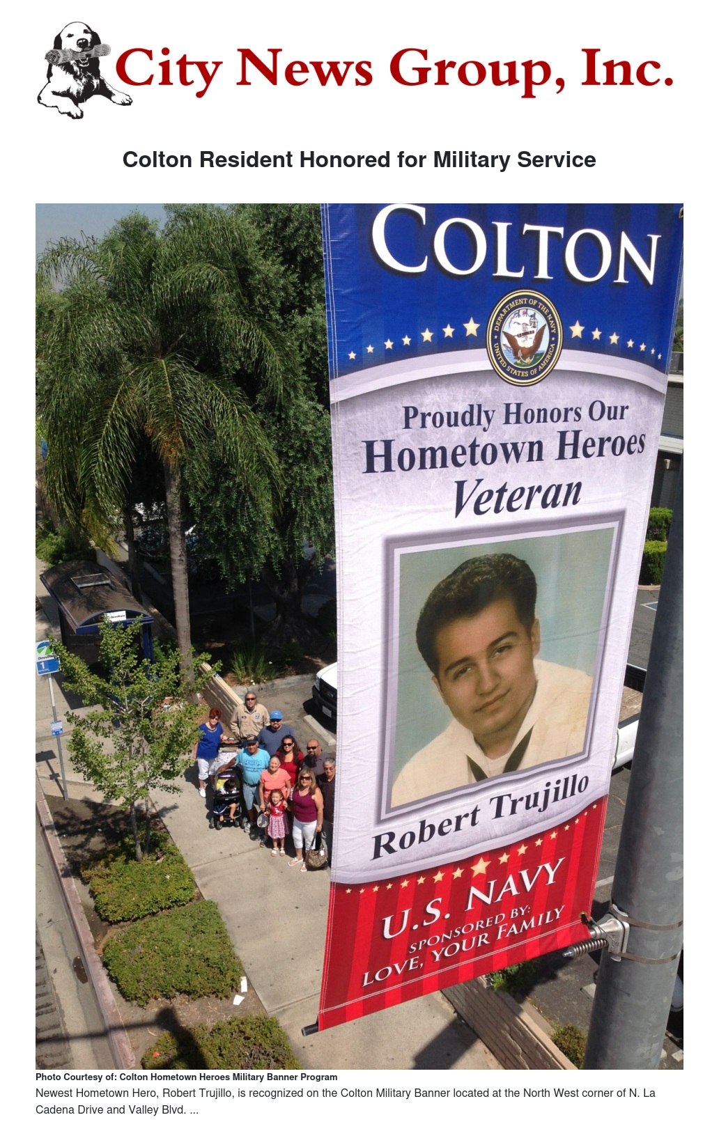 Recently, Robert Trujillo was nominated by his friends and family to be honored by the city of Colton for the Colton Hometown Heroes Military Banner Program.