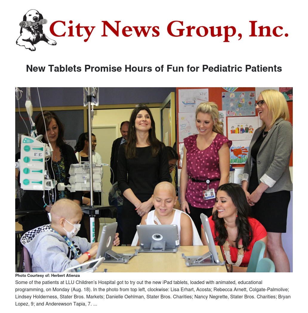 Children who are bedridden or otherwise unable to leave their room at LLU Children’s Hospital will now receive to-their-room entertainment that they did not have before. Starlight Children’s Foundation, sponsored by Colgate-Palmolive and Stater Bros. Charities, presented four iPad tablets to the hospital on Monday, Aug. 18.