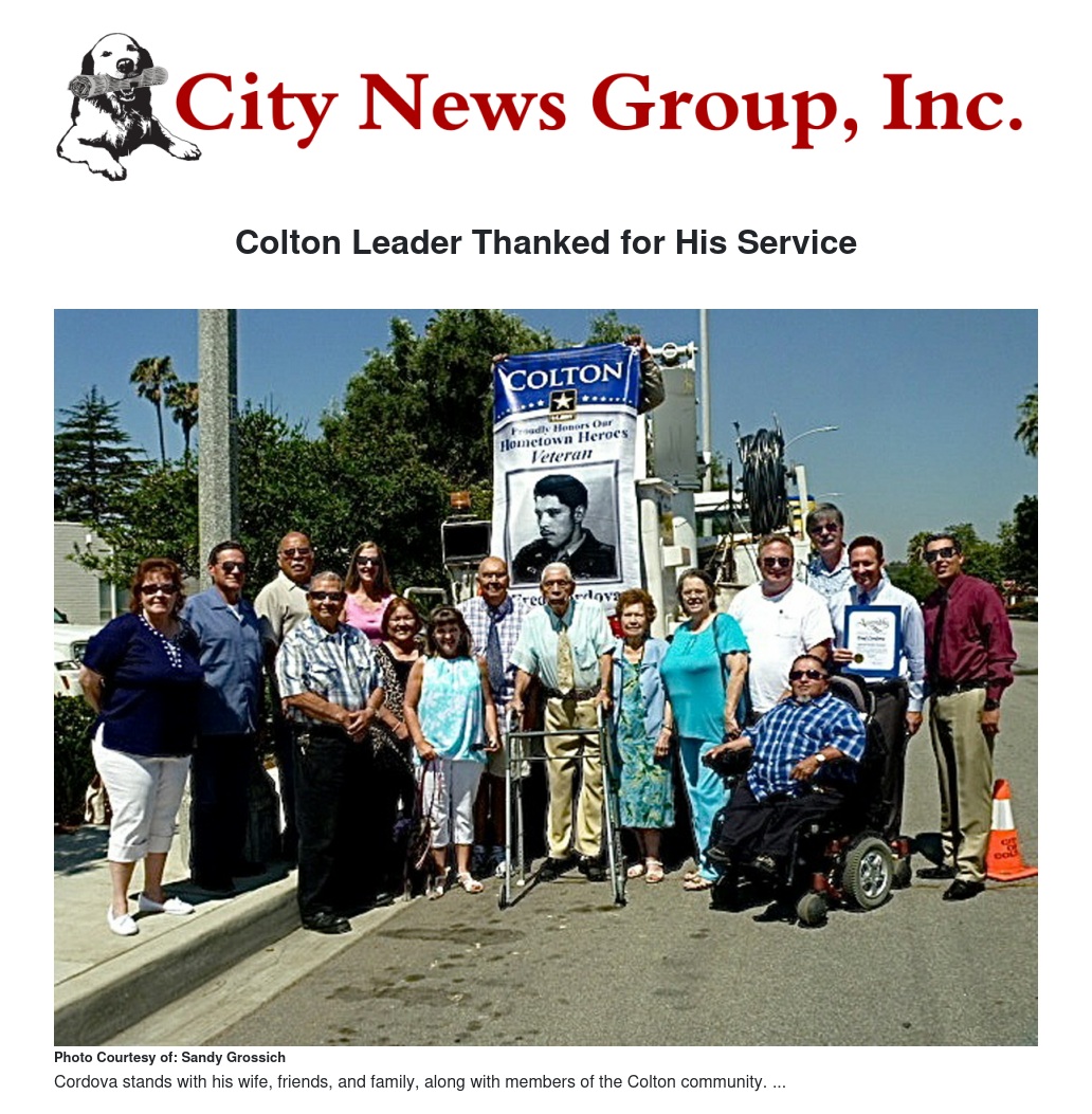 Fred Cordova of Colton has been a leader in the community for years and has no received the honor of a Colton Military Banner as part of the Colton's Military Banner Program. Fred Cordova served overseas in Korea during WWII.