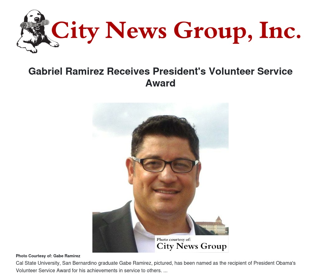 Gabriel Ramirez, a graduate student from California State University San Bernardino, has achieved national recognition as The President’s Volunteer Service Award recipient (PVSA), a premier volunteer awards program that encourages citizens to live a life of service through presidential gratitude and national recognition.
