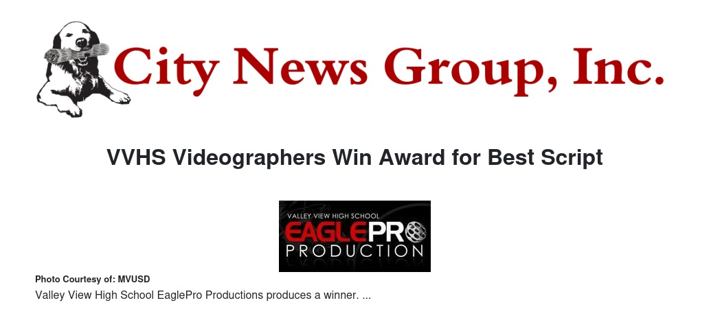 Congratulations again goes to the student videographers at Valley View High School. At the Directing Change Awards ceremony at the Fox Theater in Downtown Riverside, the team of Leslie Ponce, Shahriyar Mustafiz, Christian Aguilar and Erick Fernandez won the award for “Best Script” for their suicide-prevention public service announcement, “Save Me.”