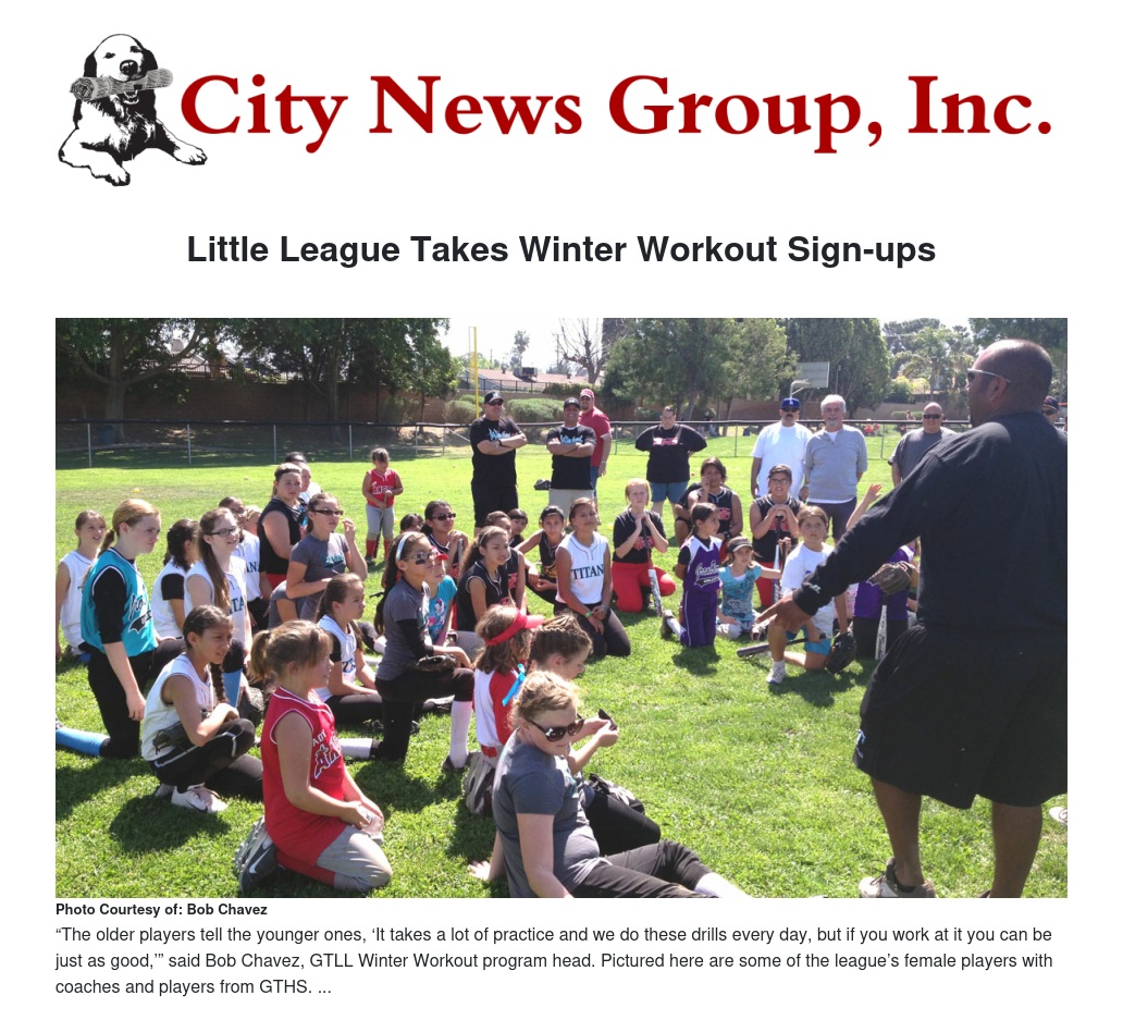 Dozens of boys and girls ages 8 to 14 from Grand Terrace and neighboring cities signed up for the workouts during the first weekend of sign ups. The program was put together officially this year, taking inspiration from individual winter workout sessions led by individual team coaches in the past, said Bob Chavez, a former GTLL coach, current league player agent and head of the winter workout program.