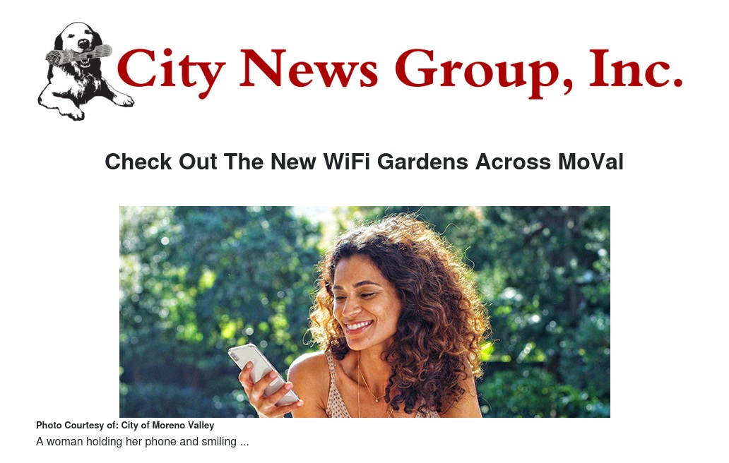 The City of Moreno Valley has expanded free WiFi Gardens to three additional local parks and facilities—JFK Park and Pedrorena Park in District 4, and enhanced service around the Civic Center Amphitheater in District 1.