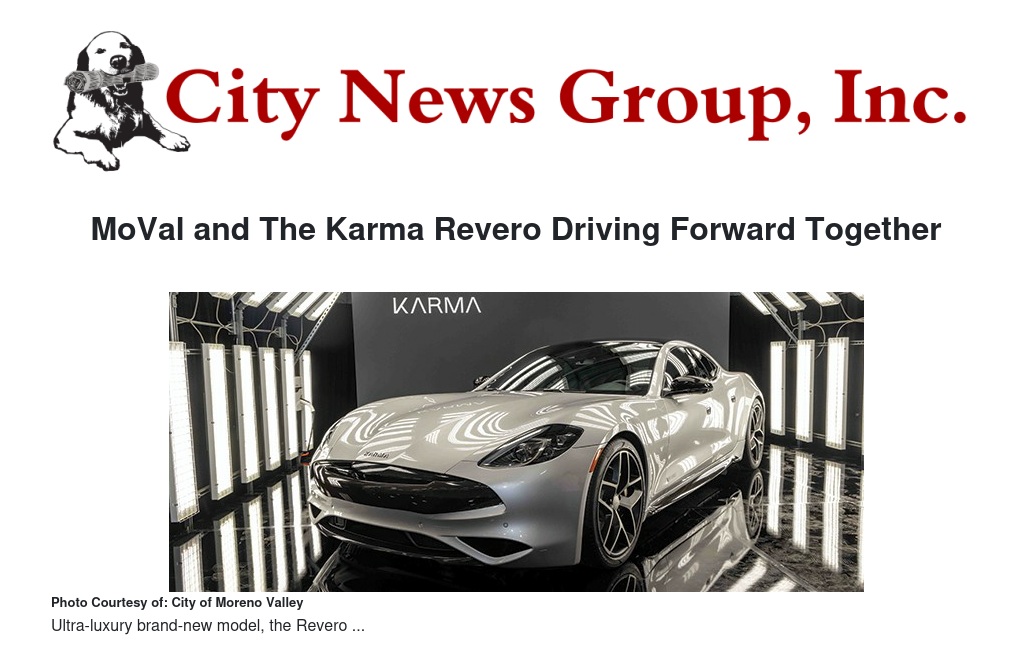 “Moreno Valley continues to partner with like-minded organizations and corporations,” said Moreno Valley Mayor Pro Tem and District 4 Councilmember Cheylynda Barnard. “We are very supportive of environmentally responsible growth, and the Karma Revero series is a beautiful example of this compatibility.”