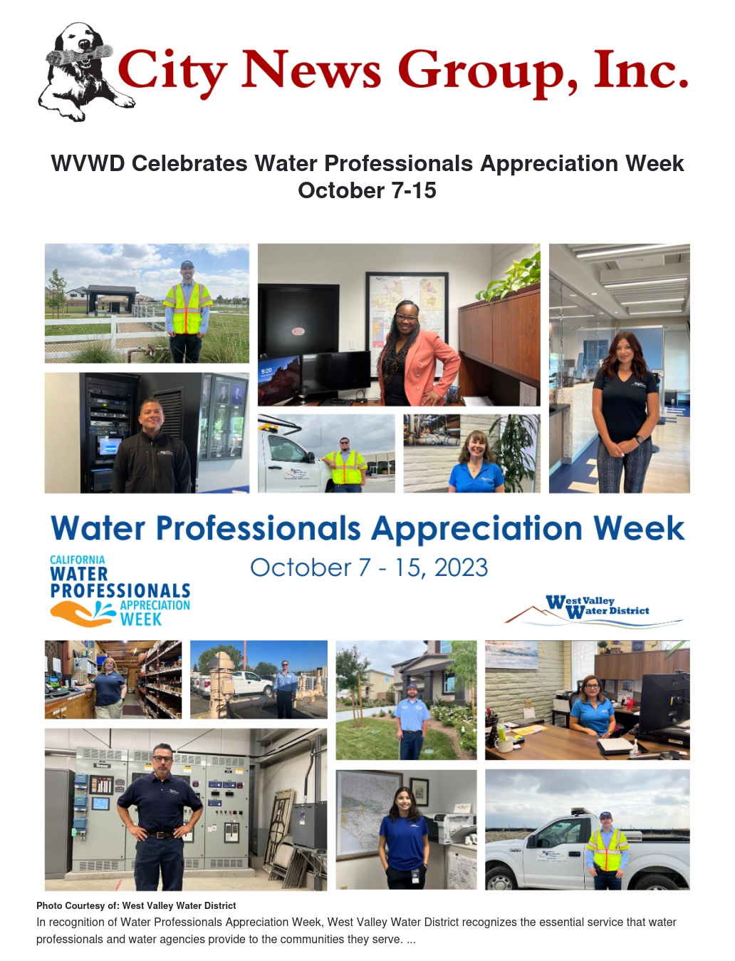 WVWD Celebrates Water Professionals Appreciation Week October 7-15 by Socorro Pantaleon - City News Group, Inc.