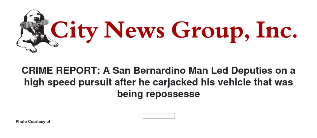 CRIME REPORT: A San Bernardino Man Led Deputies on a high speed pursuit after he carjacked his vehicle that was being repossesse