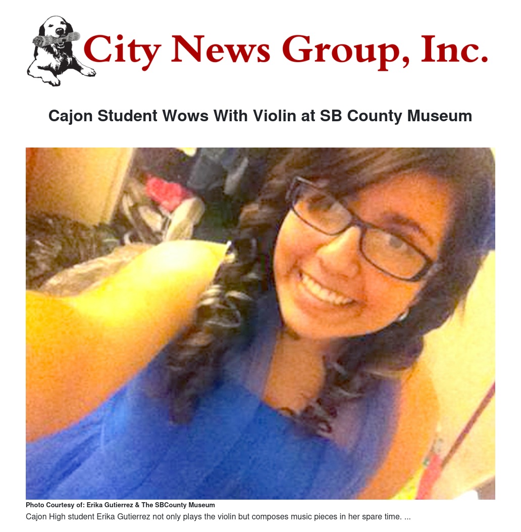 On Saturday, February 8, Cajon High School student Erika Gutierrez offered a public violin performance at the San Bernardino County Museum.