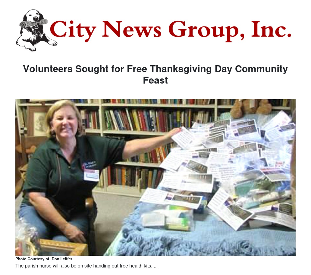 Right now, there is a critical need for volunteers to come forward and spend an hour or all day at the church to support this effort. Last year, soccer teams, clubs and social groups and high school students needing community service hours joined in with church people. That response is needed again to make this year's feast possible. Last year, 170 volunteers helped.