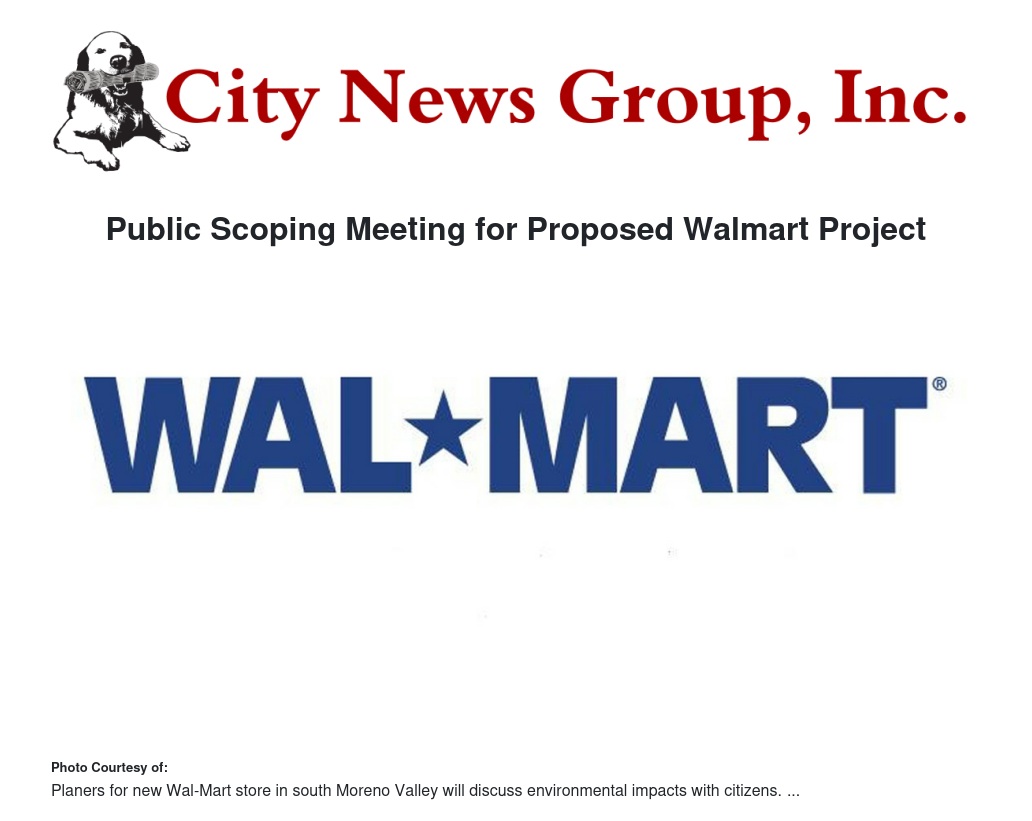 A public scoping meeting will be held on Wednesday, April 16th to discuss the proposed South Moreno Valley Walmart project and to take public comments regarding the potential environmental impacts. The proposed project is to be located at the southwest corner of Perris Boulevard and Gentian Avenue in the City of Moreno Valley. The public review period of the Notice of Preparation for this project is March 28th through April 28th.