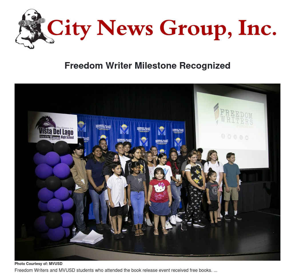 The Freedom Writers Foundation chose to release the new book at one of our MVUSD campuses to celebrate our District's milestone of reaching 150 Freedom Writer Teachers, including Superintendent Dr. Kedziora and School Board President Jesús Holguín.