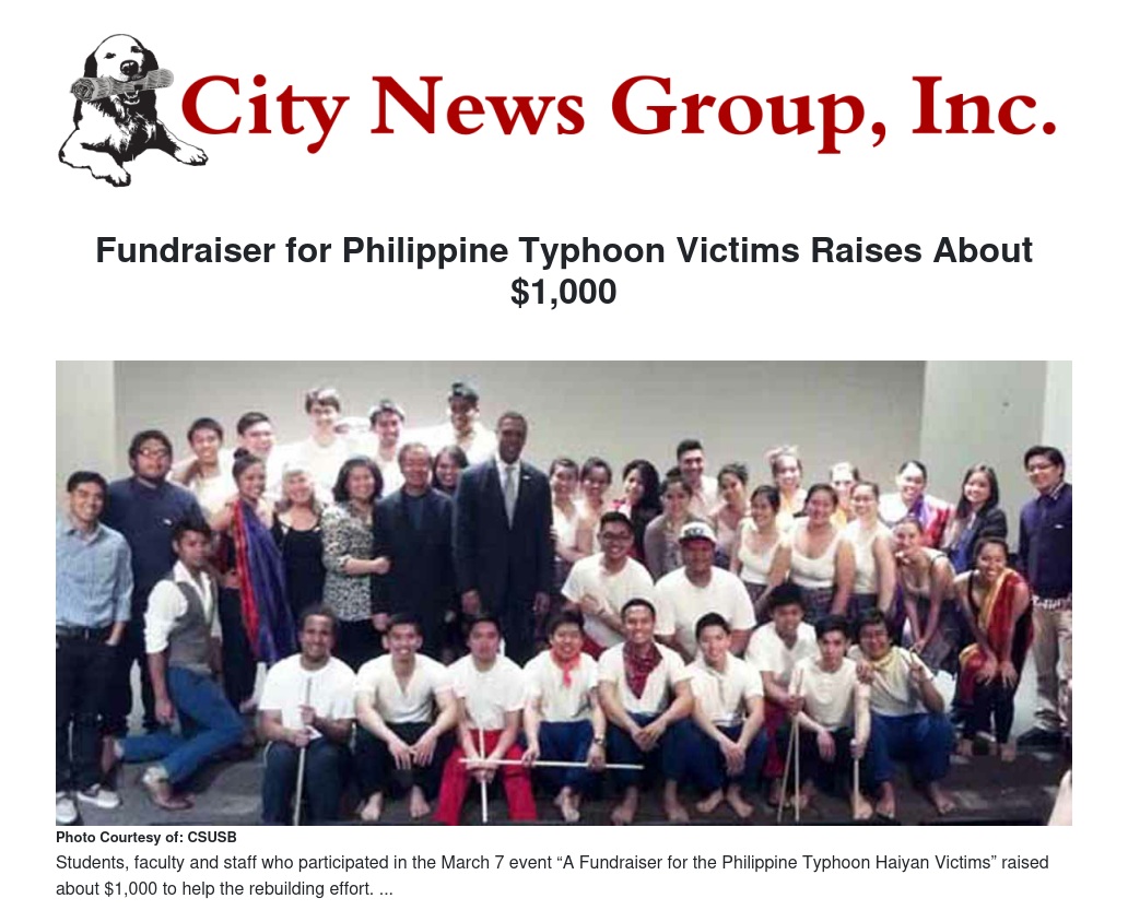 About 100 people attended “A Fundraiser for the Philippine Typhoon Haiyan Victims” on March 7 at Cal State San Bernardino for an evening of Filipino folk dances and music – along with an update on the recovery effort in the central Philippines in the four months since the storm struck. The money raised will go toward the work of the Good Shepherd Sisters as they help the barangay of Guiuan, where the typhoon first made landfall on Nov. 8.