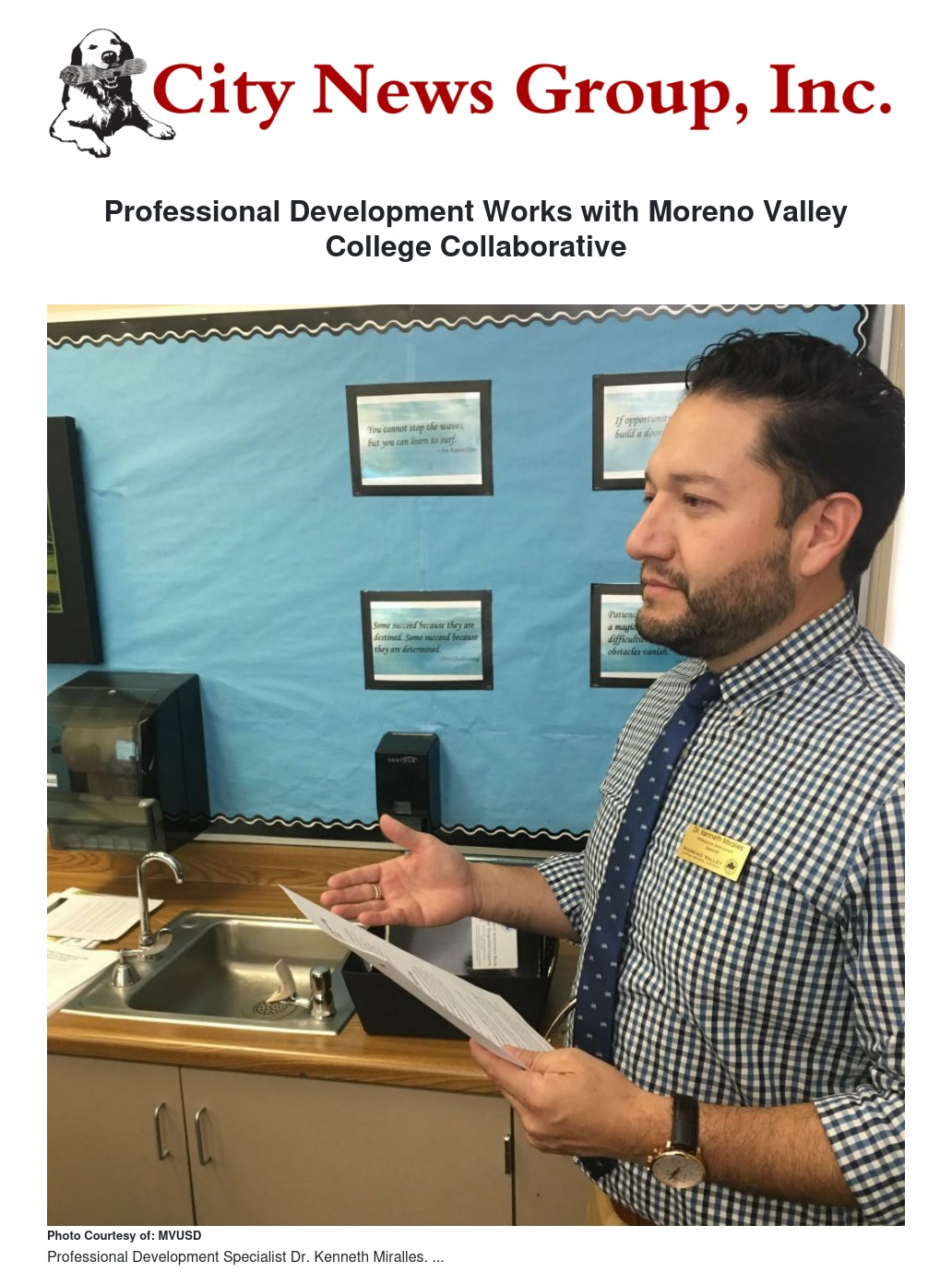 Recently, Professional Development Specialist Dr. Kenneth Miralles joined surrounding districts at Moreno Valley College to work on creating paths to college for Moreno Valley Unified’s 33,200 students. The K12/MVC English Collaborative exists to “create equitable opportunities for historically underrepresented and underserved communities" and to "support students’ successful college transition and completion.”