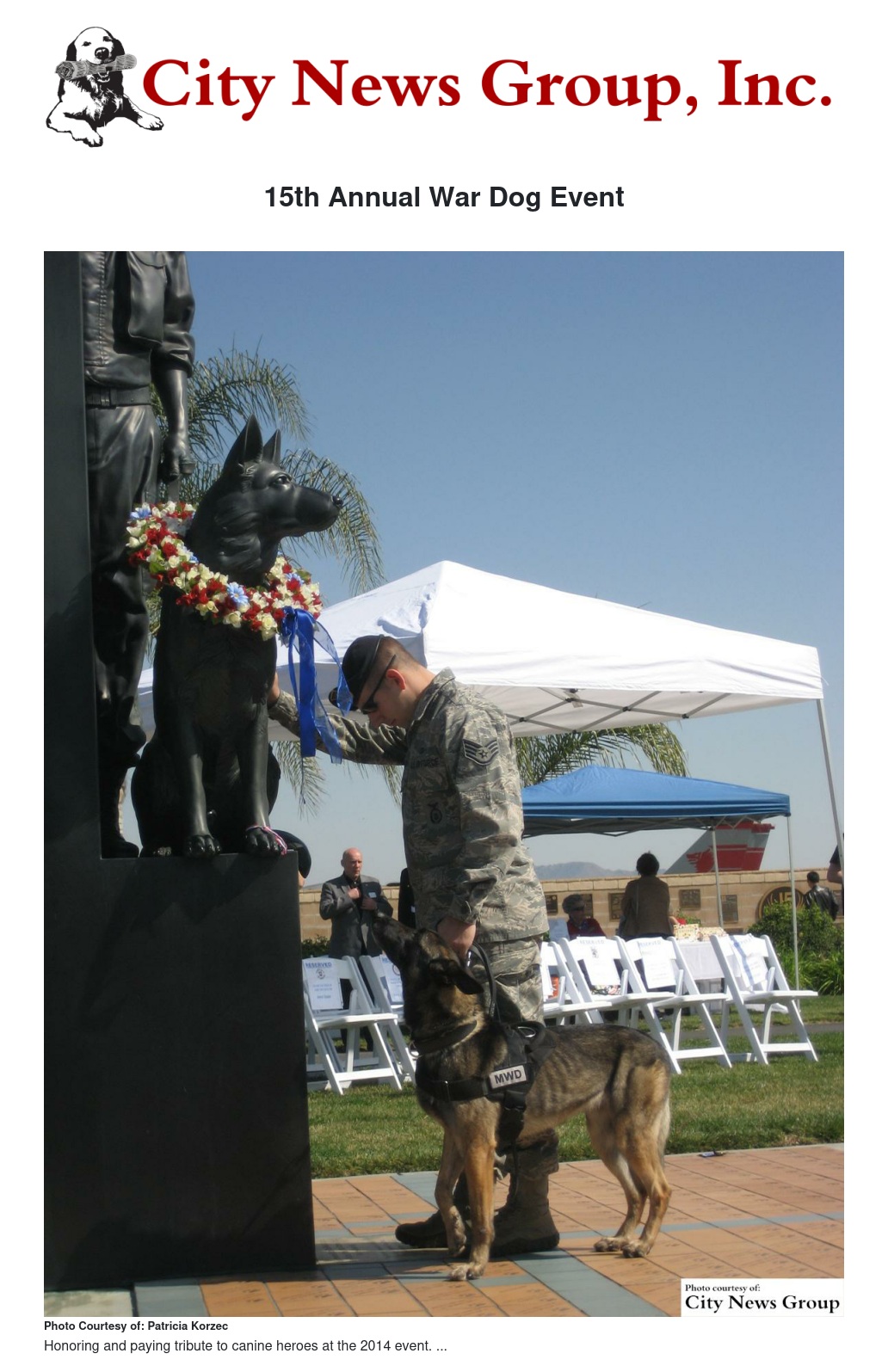 The event is free to the public and will take place in front of the West Coast National War Dog Memorial in the courtyard of the March Field Air Museum.