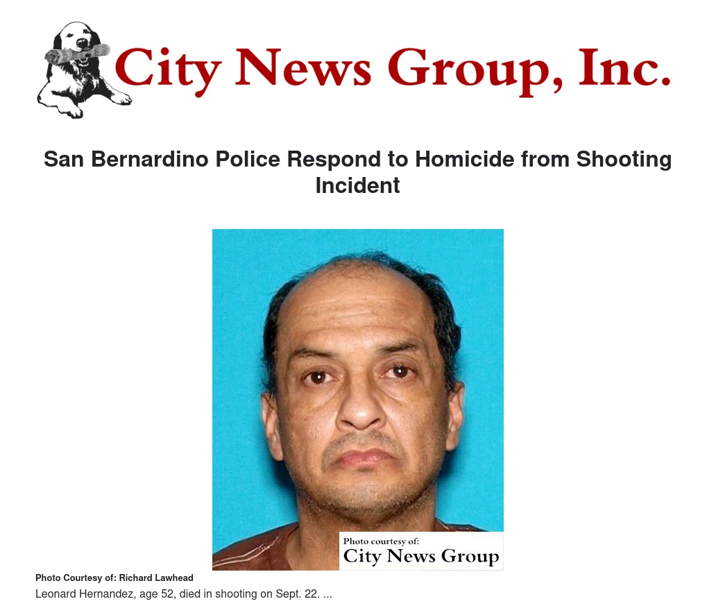 On Sept. 22, at about 12:51 a.m., members of the San Bernardino Police Department Patrol Division were dispatched to the 800 Block of North Dallas Ave regarding a shooting.