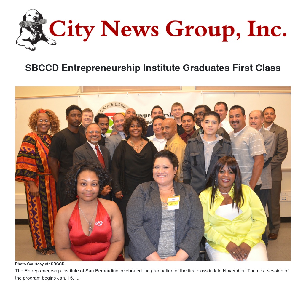 The Entrepreneurship Institute of San Bernardino, administered by the San Bernardino Community College District (SBCCD) through its Economic Development and Corporate Training (EDCT) Division, graduated its first class on Nov. 20.