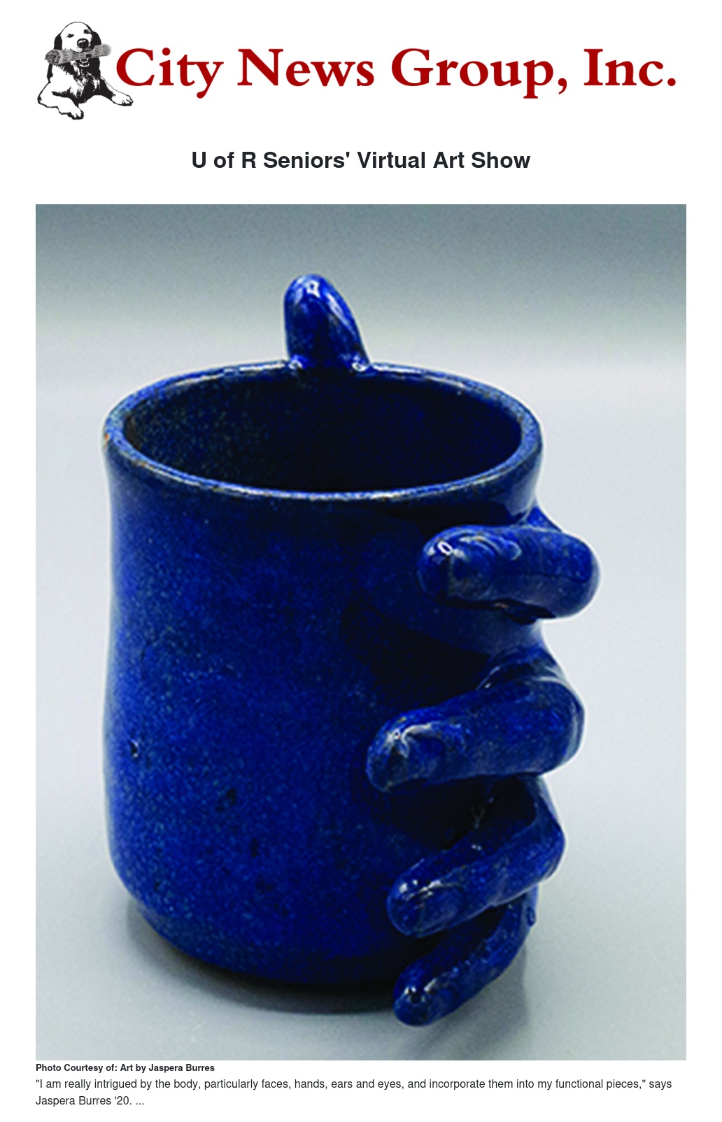 “We wanted to reproduce the experience of the senior art show that would give them a sense of culmination,” says Galloway. In addition to the website, students have been working to produce a printed catalog of their work—something that was planned long before there were murmurs of a public health crisis but that will nonetheless aid in documenting these circumstances.