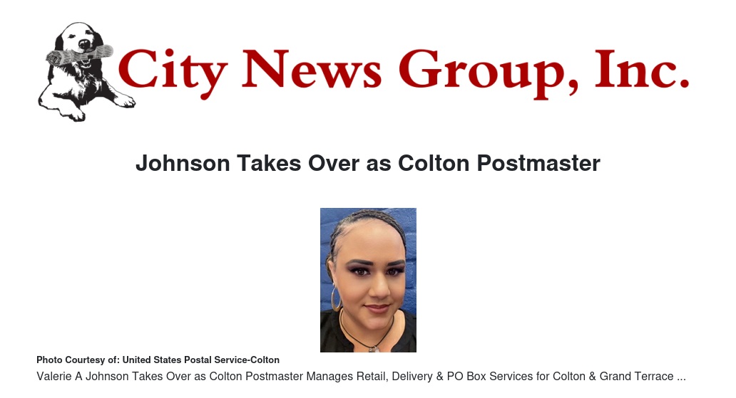 Johnson Takes Over as Colton Postmaster by Duke Gonzales - City News Group, Inc.