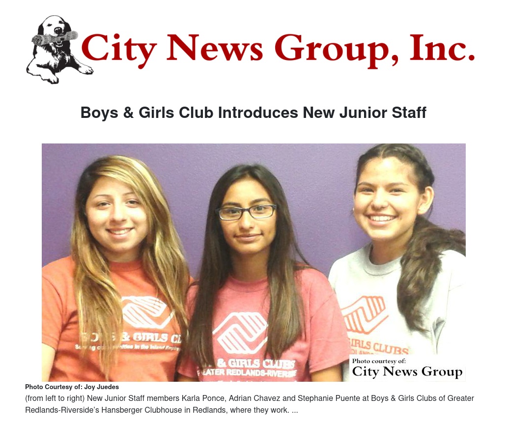 Four Junior Staff members started work at the Boys & Girls Clubs of Greater Redlands-Riverside in September.