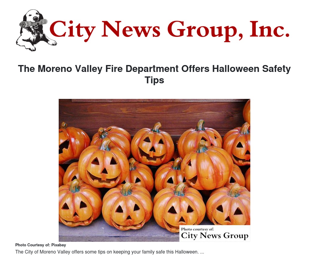 The Moreno Valley Fire Department Offers Halloween Safety Tips