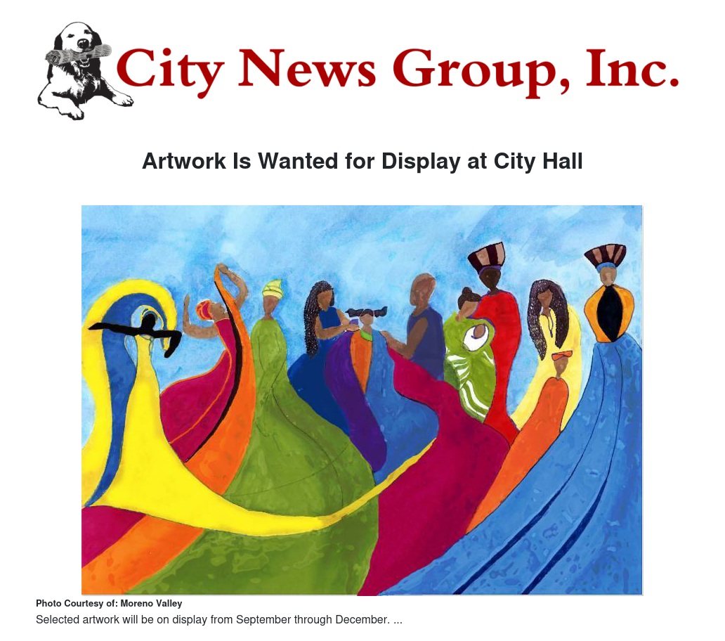 Selected artwork will be on display from September through December. Artists must live in Moreno Valley to have their work displayed.