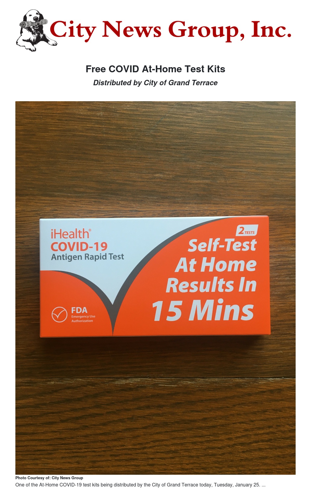 Free COVID At-Home Test Kits by City of Grand Terrace - City News Group, Inc.