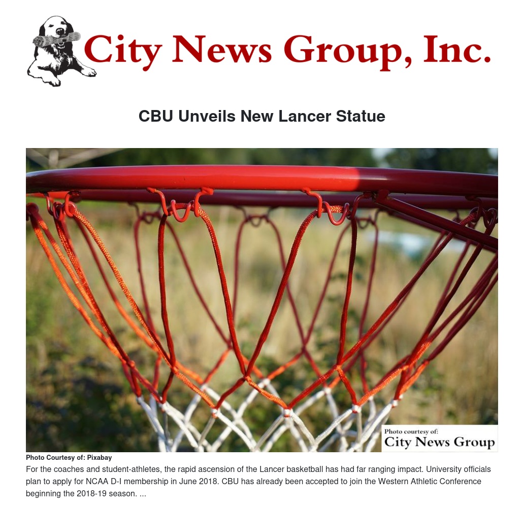 Currently, the Lancers compete in the NCAA Division II PacWest Conference and will remain eligible for all PacWest championships and NCAA D-II postseason play through the 2017-18 season. University officials plan to apply for NCAA D-I membership in June 2018. CBU has already been accepted to join the Western Athletic Conference beginning the 2018-19 season.