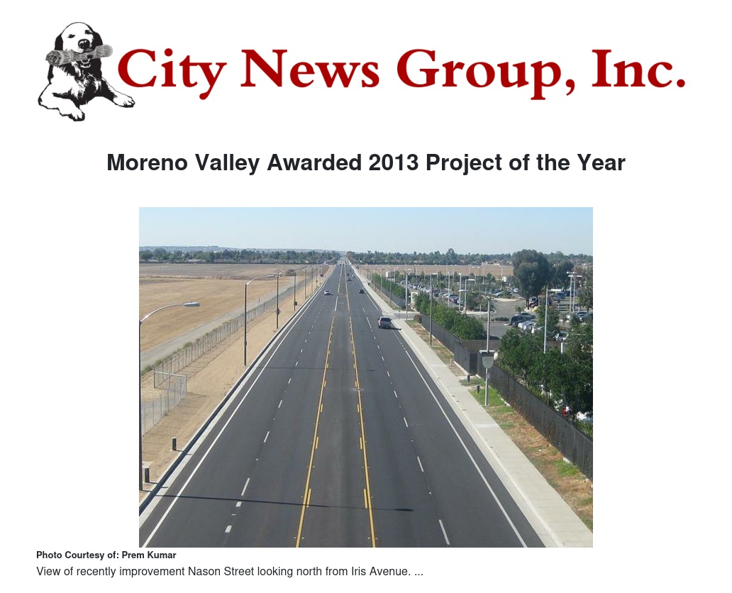 Moreno Valley Awarded 2013 Project of the Year