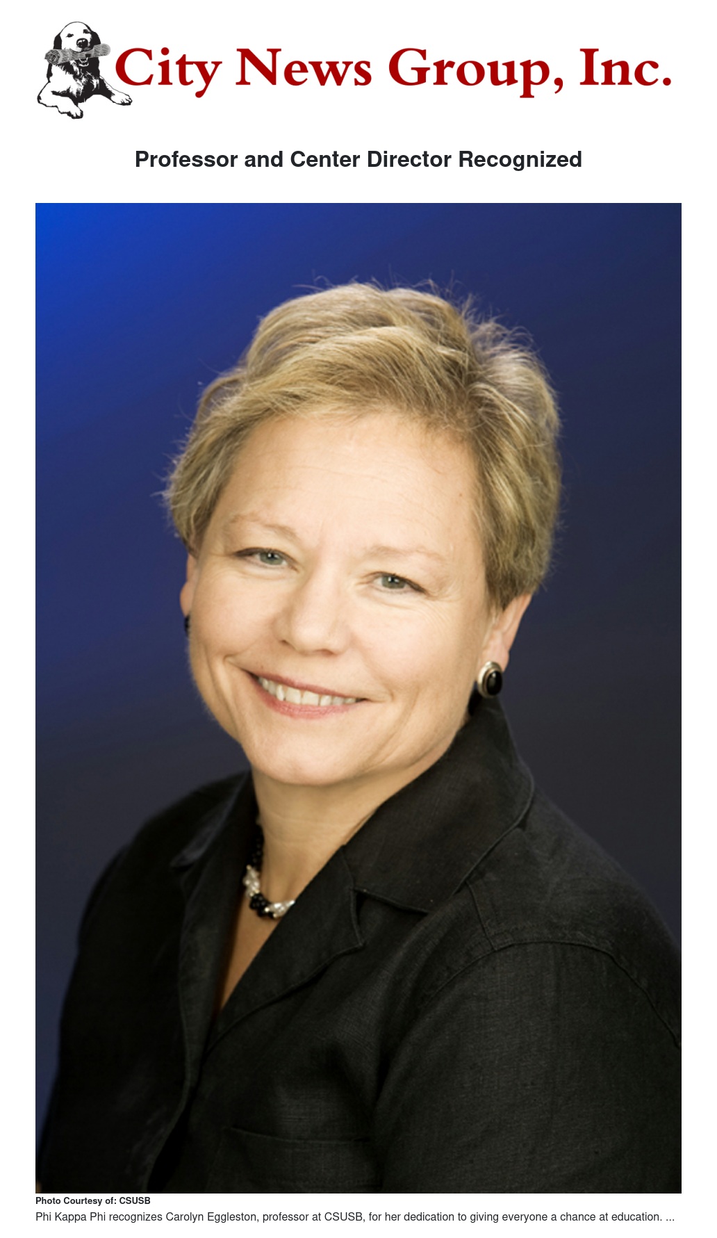 Local professor of education, Carolyn Eggleston, has been recognized by the Phi Kappa Phi Honor Society as its National Scholar for 2014-2016, officials announced this month.