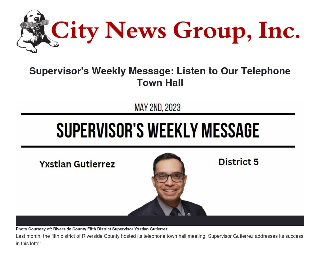 Supervisor's Weekly Message: Listen to Our Telephone Town Hall by Yxstian Gutierrez - City News Group, Inc.