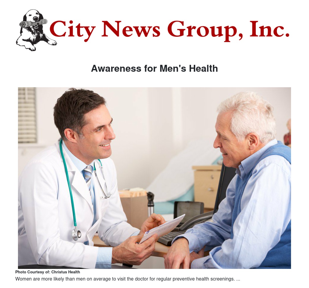 June is nationally recognized as Men’s Health Month. This month aims to heighten the awareness of preventable health problems and encourages early detection and treatment of disease among men and boys. June gives health care providers, public policy makers, the media and individuals an opportunity to encourage men and boys to seek regular check-ups, medical advice and early treatment for disease.