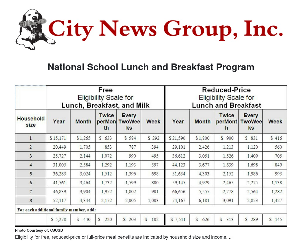 The household size and income criteria identified in the photo will be used to determine eligibility for free, reduced-price, or full-price meal benefits.