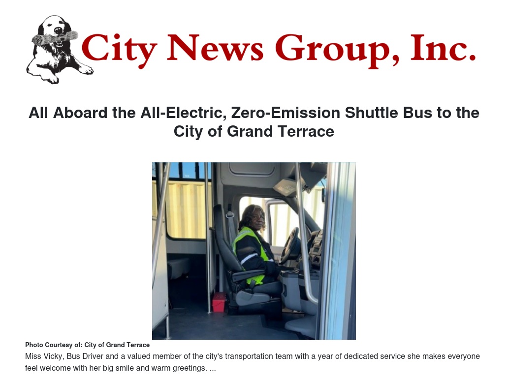 All Aboard the All-Electric, Zero-Emission Shuttle Bus to the City of Grand Terrace by Mark Hastings - City News Group, Inc.
