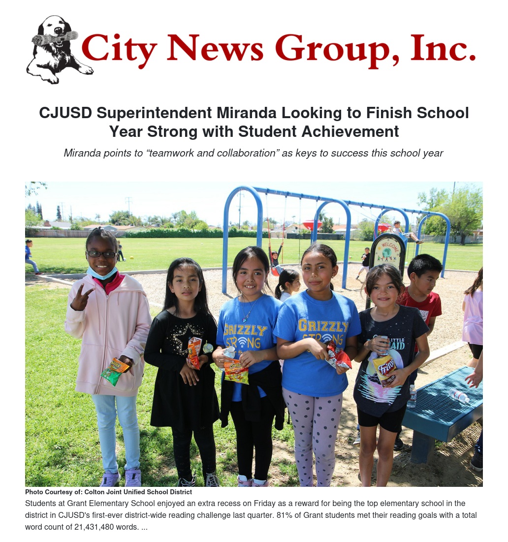 CJUSD Superintendent Miranda Looking to Finish School Year Strong with Student Achievement by Vivian Johnson - City News Group, Inc.