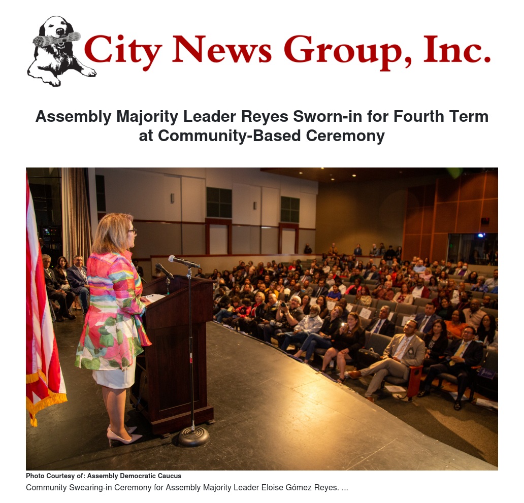 Assembly Majority Leader Reyes Sworn-in for Fourth Term at Community-Based Ceremony by Jenn Hardy - City News Group, Inc.