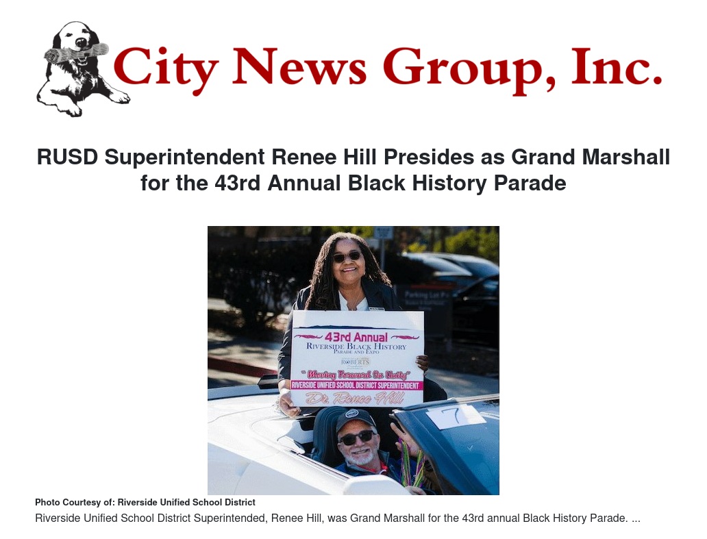 RUSD Superintendent Renee Hill Presides as Grand Marshall for the 43rd Annual Black History Parade by Nick Hamre - City News Group, Inc.