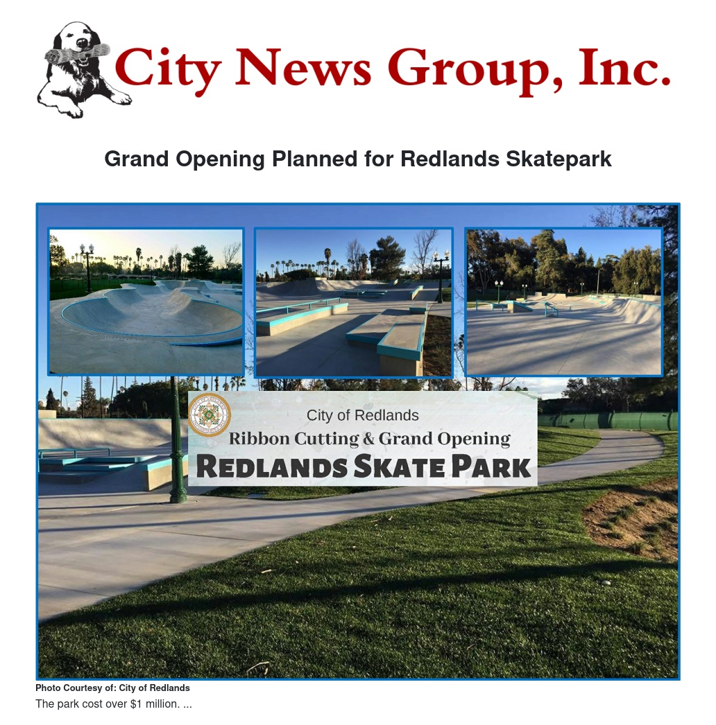 A ribbon cutting and grand opening ceremony for the newly completed Redlands Skatepark will be held from noon to 4 p.m. Saturday, Jan. 26, in the southern portion of Sylvan Park.