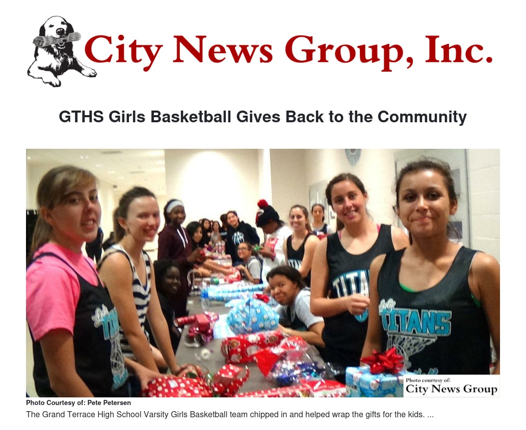 The Grand Terrace High School Girls Basketball Program recently held a toy drive, the 2014 Toys For Tots Holiday Invitational.