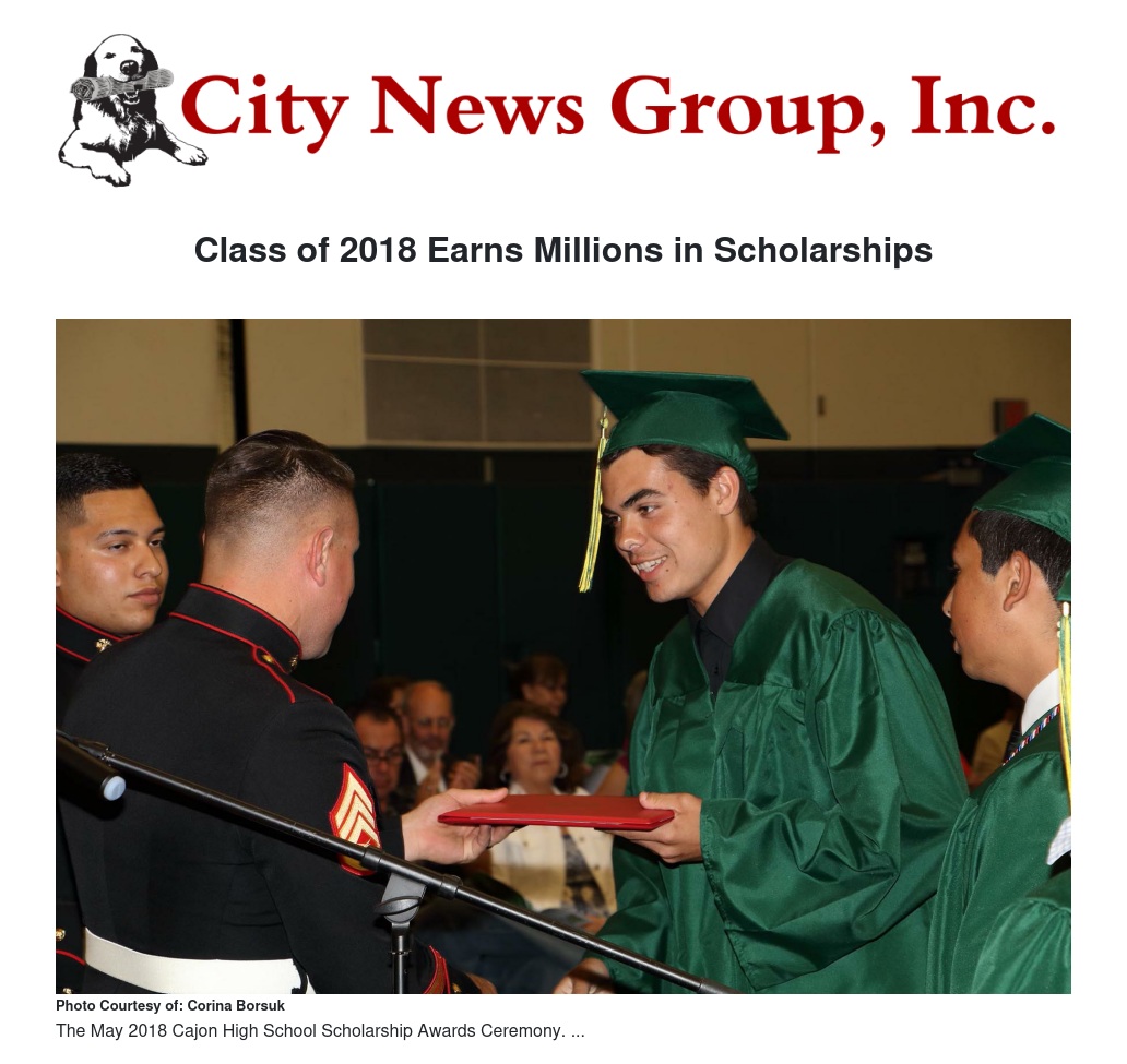 Cajon High School’s graduates also earned $992,000 in U.S. Military Academy scholarships from the Army, Marines, Air Force, and Navy.