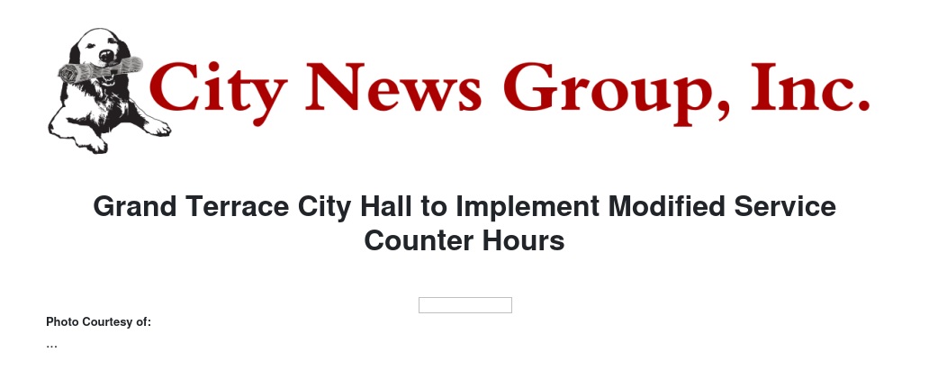 The City of Grand Terrace will begin implementing modified counter service hours at City Hall beginning Oct. 6, according to a release issued by the city.