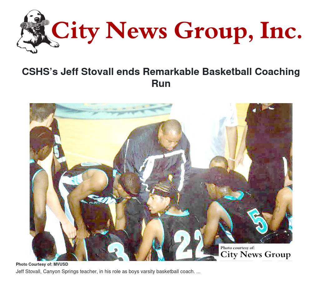Before coming to CSHS, he coached at San Bernardino Valley College and San Bernardino High. Congratulations, Coach Jeff Stovall, on an outstanding coaching career.
