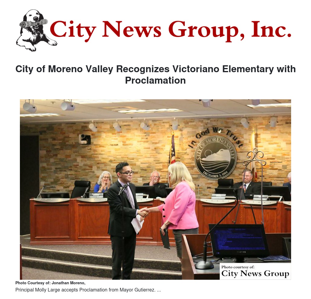 City of Moreno Valley Recognizes Victoriano Elementary with Proclamation