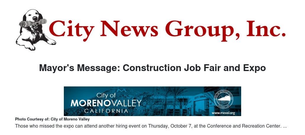 Last Friday’s Construction Job Fair and Expo was yet another example of placing Moreno Valley job seekers front and center. Hundreds of residents gathered at our Conference and Recreation Center to network with the best of the best in the construction trade unions. Thanks to our job fair, more local workers are on their way to jumpstarting new careers in skilled trades. I would like to thank the Building and Construction Trades Council of San Bernardino and Riverside Counties (AFL-CIO), Southwest Regional Council of Carpenters and all our event partners and participants for making this event a success.