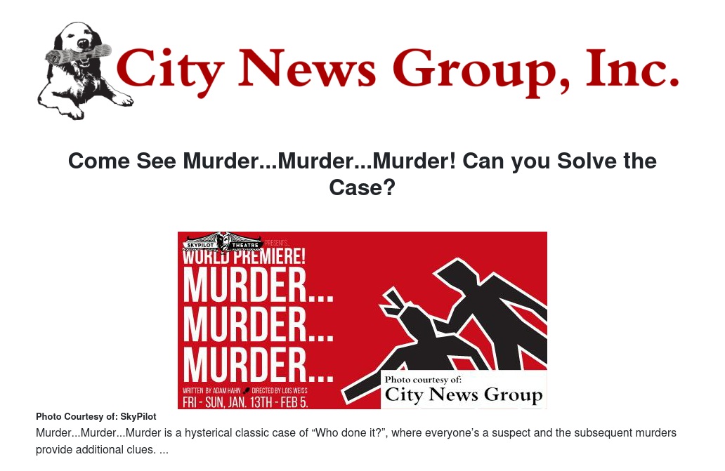 ALL>> SkyPilot Theatre Company presents the Friday, Jan. 13 in World Premiere of "Murder...Murder...Murder" at the Pan Andres Theater in Los Angeles.