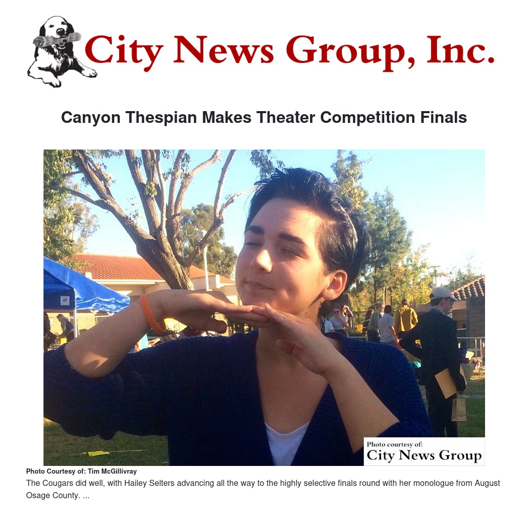The Cougars did well, with Hailey Selters advancing all the way to the highly selective finals round with her monologue from August Osage County.