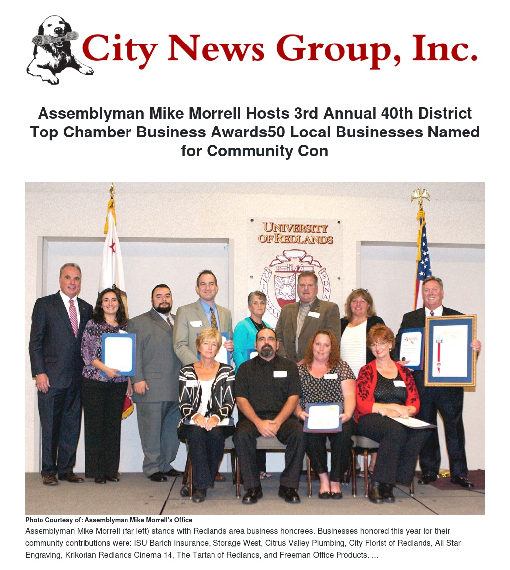 Assemblyman Mike Morrell (R-Rancho Cucamonga), in collaboration with the Chambers of Commerce within the 40th Assembly District, which includes the communities of Highland, Loma Linda, Rancho Cucamonga, Redlands, San Bernardino, Mentone and Phelan, on Oct. 11 hosted the 3rd Annual Top Chamber Business (TCB) Awards, recognizing 50 businesses from five cities for their community and business contributions.