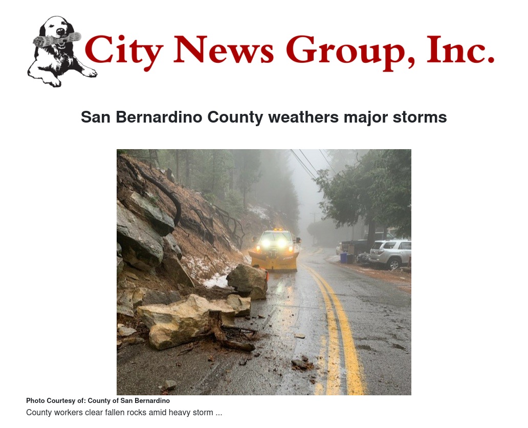 San Bernardino County weathers major storms by County of San Bernardino - City News Group, Inc.