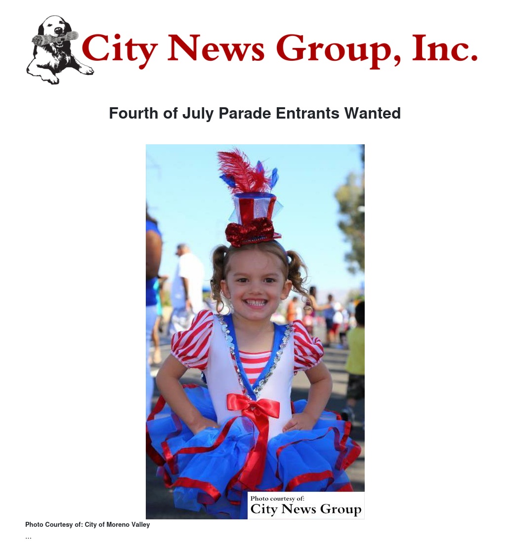 MORENO VALLEY>> Don't miss out on your opportunity to celebrate America and be part of the City of Moreno Valley's Fourth of July hometown parade.