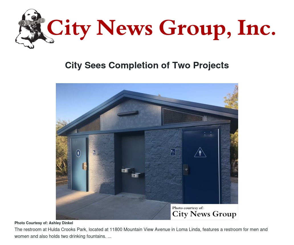 LOMA LINDA>> During the Feb. 28 City Council meeting, the council accepted a couple of projects as substantially complete, including the installation of a prefabricated restroom at Hulda Crooks Park and the completion of Anderson Street pavement rehabilitation.