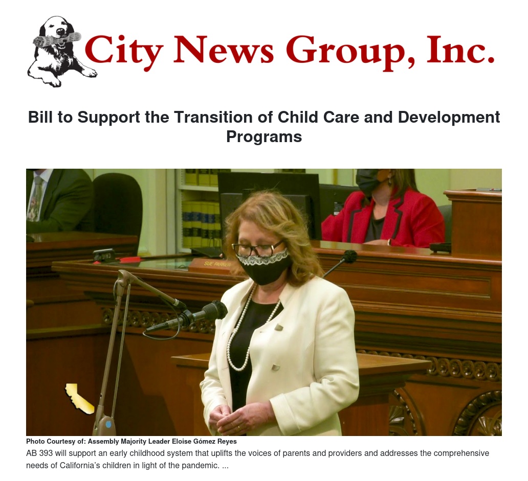 “We are proud to work with Assemblymember Reyes to co-sponsor AB 393,” said the Child Care Resource Center of California. “The transition of child care programs from the California Department of Education to the California Department of Social Services will require partnership between local child care and state agencies to ensure a process which will preserve and protect services and set the foundation for a more robust and integrated child care system in the future.”